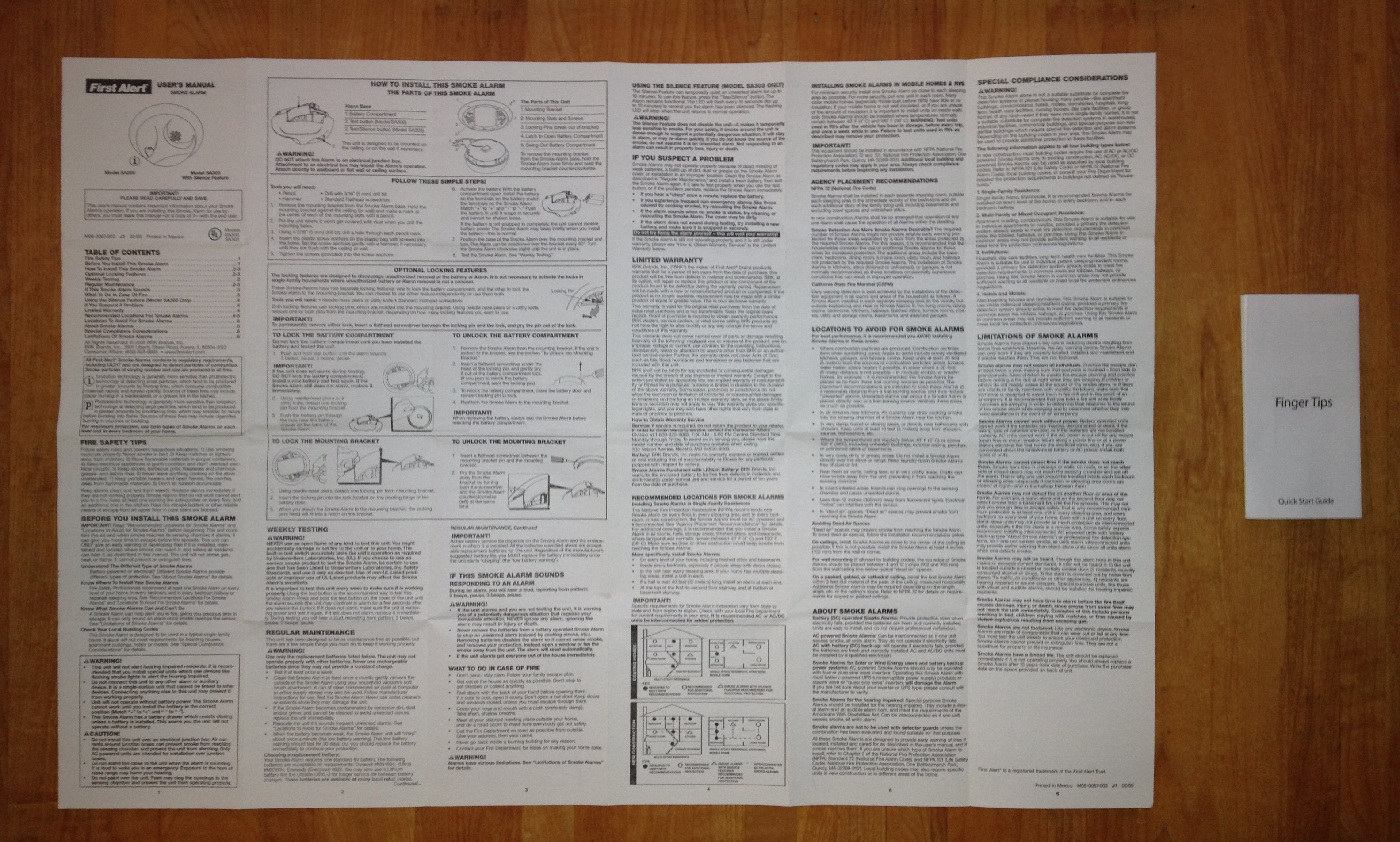 Really. Do we really need this many instructions for a smoke alarm? Well, my guess is that the lawyers say, “Yes.” Every possible misuse had to be accounted for and warned against. Every accident that ever occured where a smoke alarm might not have done its job perfectly resulted in another sentence, another picture, another set of guidelines to achieve a successful smoke alarm experience.